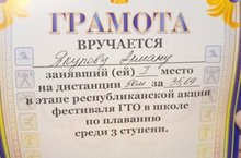 На республиканской акции фестиваля ГТО по плаванию ученик 5 класса Якупов Арман занял 1 место!!!