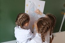 В 1Б классе прошёл классный час "Через тернии к звёздам" Учащиеся узнали, кто была первой женщиной в космосе и ещё много нового и интересного. Дети проходили лабиринты, разгадывали кроссворд и нарисовали ракеты в открытом космосе