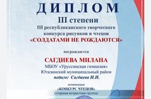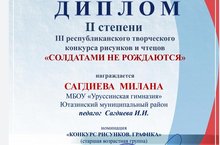Сагдиева Милана награждена дипломом III степени на III творческом конкурсе рисунков и чтецов. Поздравляем и желаем творческих успехов!!!