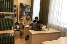 В читальном зале библиотеки гимназии одиннадцатиклассники усиленно готовятся к ЕГЭ.