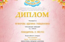 Поздравляем обучающуюся гимназии Ягфарову Аделину, которая награждена Дипломом победителя Всероссийского конкурса «Мое рукоделие». Руководитель Хикматуллина Ф.К. Поздравляем и желаем творческих успехов!!!