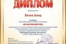 Ученик 3 В класса МБОУ "Уруссинская гимназия" Ямаев Амир стал победителем республиканского детского конкурса "Песни победителей", посвященном 75 летию Победы в Великой Отечественной войне.