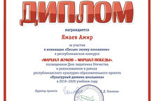 Ученик 3 В класса "МБОУ "Уруссинская гимназия" награждён дипломом республиканского конкурса " Маршал Жуков- маршал Победы", в номинации "Письмо своему поколению"