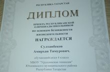 Ученик 4б класса МБОУ "Уруссинская гимназия" Султанбеков Амирхан стал призёром Республиканской олимпиады школьников по ОБЖ. Поздравляем и желаем покорения новых высот!
