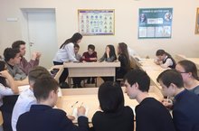 Сегодня прошел химический КВН между командами "Электрон" и "Протон" 8а и 8б классов. Учащиеся показали хорошее знание предмета и умения решать экспериментальные задачи, проявили смекалку, артистизм и даже литературные таланты. Активное участие приняли также болельщики обеих команд. В итоге со счетом 67:57 выиграла команда 8а класса. Игра всем очень понравилась.