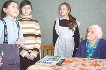 Учащиеся 4 классов посетили участницу блокады в г.Ленинграде Служаеву А.М. Ребята рассказывали стихи, пели песни. Анастасия Михайловна рассказала о своей нелегкой жизни, пожелала ребятам никогда не узнать тягот войны.