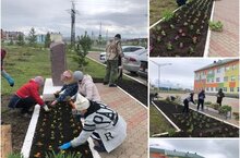 Коллектив гимназии продолжает благоустраивать территорию. На клумбах пёстрым ковром были высажены яркие цветы.Цветущий школьный двор- визитная карточка гимназии