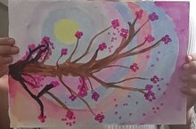 Ребята 5 класса рисовали "Ветку сакуры" используя коктельную трубочку и ватные палочки. Нетрадиционная техника рисования