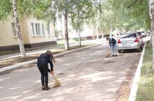 На территории школьного двора произведена вырубка проростов деревьев, уборка территории