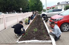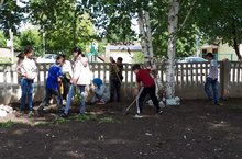 Лагерь труда и отдыха ко Дню Рождению А.С. Пушкина посетили сквер, очистили и подмели территорию от веток и мусора вокруг мемориала.