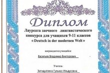 Обучающийся 9 класса Васильев Владимир стал лауреатом заочного лингвистического конкурса по немецкому языку "Deutch in der modernen Welt". Учитель Загидуллина Г.И. Поздравляем
