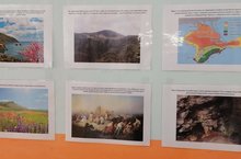 В фойе школы фото- выставка с интересными фактами о полуострове Крым. -