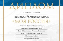 Созонова Викториялауреат 2 степени Всероссийского конкурса "Моя Россия". Руководитель Шафигуллина Р.В.