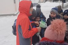 Во 2а классе проведена беседа "День зимующих птиц", потом ребята покормили птиц
