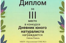 Победитель Республиканского конкурса "Дневник юного натуралиста" 28.11.2020