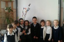 Ученицы 8 класса в подшефном 4 классе провели классный час посвященный Дню космонавтики. Рассказ о Ю.Гагарине, В.Терешковой, собачка Стрелка и Белка помогли ребятам правильно ответить на вопросы викторины.Итогом классного часа стала фотография с поделками ребят