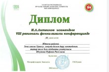 Дипломант VIII региональной научно-практической конференции им.И. Л. Литвинова. 05.12.2024