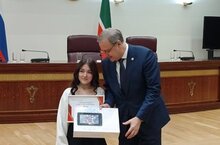 Она вместе с педагогом Царьковой А.И. приглашена в Каазнский Кремль на торжественное награждение. Альбина получила в подарок арт-планшет для дальнейшего развития своего творчества. -