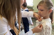 Первоклассникам-Орлятам был вручен памятный брендированный подарок - значок.