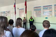 Сегодня на традиционной,еженедельной линейке для учащихся школы выступил сотрудник ГИБДД Жанназаров Р.Р.
