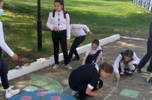 Сегодня среди учащихся третьих классов прошел конкурс рисунков на асфальте "Веселый городок".