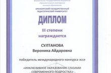 Поздравляем Веронику Схххх, учащуюся 10Б класса - победителя международного конкурса эссе "Инклюзивное образование глазами современного подростка", организованного ФГБОУ ВО "Оренбургский государственный педагогический университет", и благодарим ее наставника Вагизову Наилю Илфановну, учителя русского языка и литературы, Молодцы!!!!