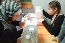 На уроках технологии девочки 6-х классов осваивают швейные машинки. Весело!