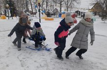 Ни один день в пришкольном лагере не походит без прогулок и игр на свежем воздухе. Хорошо зимой!