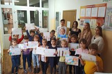 Сегодня дружина Юных пожарных среди воспитанников пришкольного лагеря провела конкурс рисунков "Мы их очень уважаем и пожарными зовём!"