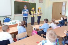 Члены отряда ЮИД в преддверии каникул провели игровую познавательную игру для первоклашек "Грамотные пешеходы"