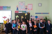 Главный принцип получения крепких знаний - внимательно слушать урок и не вертеться. Но все не так просто: за окошком светит яркое солнце - как тут усидеть!? 1Б класс нашел выход, чем занять самых "вертлявых": в рамках Недели " Технология" учащиеся изготовили вертушки!!! Классный руководитель: Гайнуллина Лилия Насимовна.