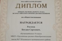 Поздравляем призера регионального этапа Всероссийской олимпиады школьников по обществознанию Рогачева Богдана, учащегося 10 Б класса и учителя истории и обществознания Гамирову Лилию Физировну, подготовившую призера! Молодцы!!! Так держать!!!