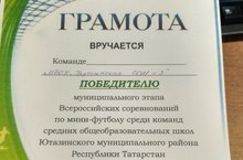 Команда МБОУ "Уруссинская СОШ №3" стала Победителем муниципального этапа Всероссийских соревнований по мини-футболу среди команд средних общеобразовательных школ Ютазинского муниципального района Республики Татарстан. МОЛОДЦЫ!!!