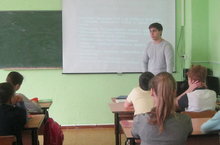 Выпускник нашей школы Иламов Динар, ныне студент 1 курса Института права Башкирского государственного университета, 22 апреля 2017 года провел открытый урок в 6Б классе на тему «Есть память, которой не будет конца». На уроке ребята прошли по суровым дорогам войны, узнали, как тяжело ковалась Победа, каков был патриотизм советского народа. Весь классный час прошел с замиранием дыхания, особенно когда звучала военная песня, и приводились факты из жизни простого народа.