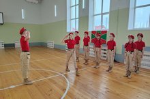 Команда школьного юнармейского отряда "Факел" приняла участие в смотре строя и песни 28.02.2023