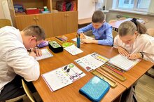 Учащиеся закрепляли счет в пределах 10, работали с карточками, развивали логическое мышление. Ребята остались довольны уроком и собой! -