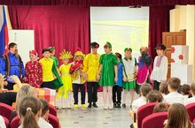 Перед учащимися и сотрудниками школы выступили участники театрального объединения "Радуга". Они показали спектакль по мотивам русской народной сказки "Кто заговорит первым?"
