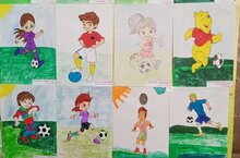 В Айшинской гимназии среди учащихся начальной школы прошёл конкурс рисунков "Мой футбол". Рисунки получились красочные и интересные.