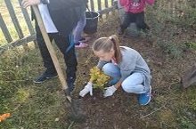 Бүген мәктәп укучылары агач утыртуда катнаштылар.