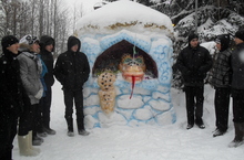 Һәр елны Яңа ел алдыннан мәктәбебез ишек алды матур-матур кар сыннарына күмелә. Аларны күреп үзеңне бер әкияти дөньяга эләккәндәй сизәсең. Һәр класс үзләренең иҗат җимешләрен елдан -ел матуррак, кызыклырак тәкъдим итә. Менә быелгысы ел да искәрмә түгел. Тышта матур йомшак кар төшә, көне дә җылы,әйтерсең лә, нәкъ безгә кар сыннары ясауга хәбәр бирә. Һәм менә алар, безнең укучылар, бар фантазияләрен җигеп эшкә кереште. Гобәйдуллина Рәйсә Алмазовна җитәкчелегендәге 11 класслар быелгысы елны да беренчелекне бирергә җыенмыйлар, күрәмсең, тырыша-тырыша нидер эшлиләр. Менә фотога үзегез күз салыгыз әле! ( Шәһәрчек төзелеп беткәч, укучыларның иҗат җимешләре белән сезне тагын бер кат таныштырырбыз дип ышандырам)