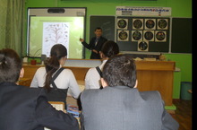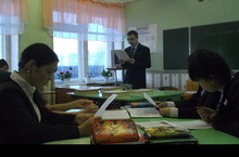 Беренче категорияле татар теле һәм әдәбияты укытучысы Кабирова Г.Р. кичә булып узган семинарда 5 класста ачык дәрес күрсәтте. Дәреснең темасы "Сүз басымы". Класс дәрестә ике группага бүленеп эшләде. Дәрес килгән кунаклар тарафыннан югары бәяләнде.