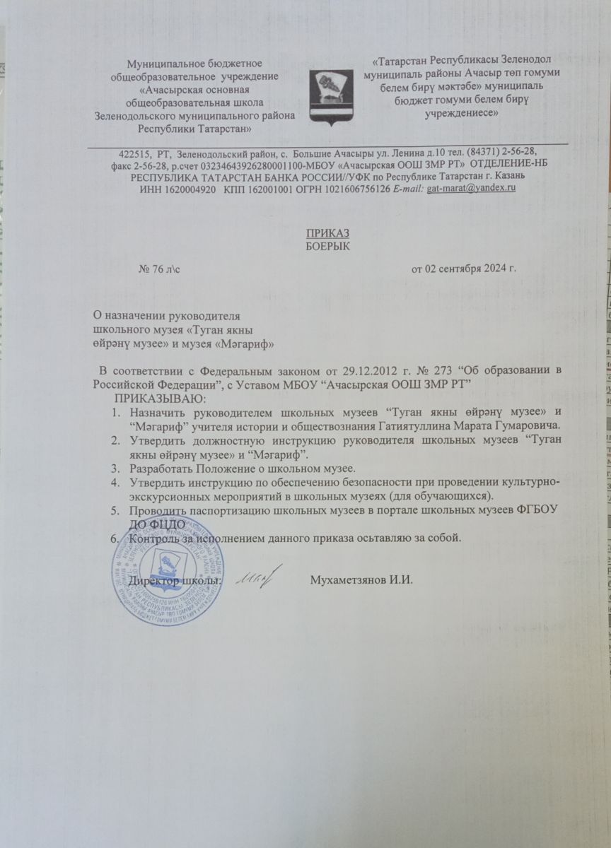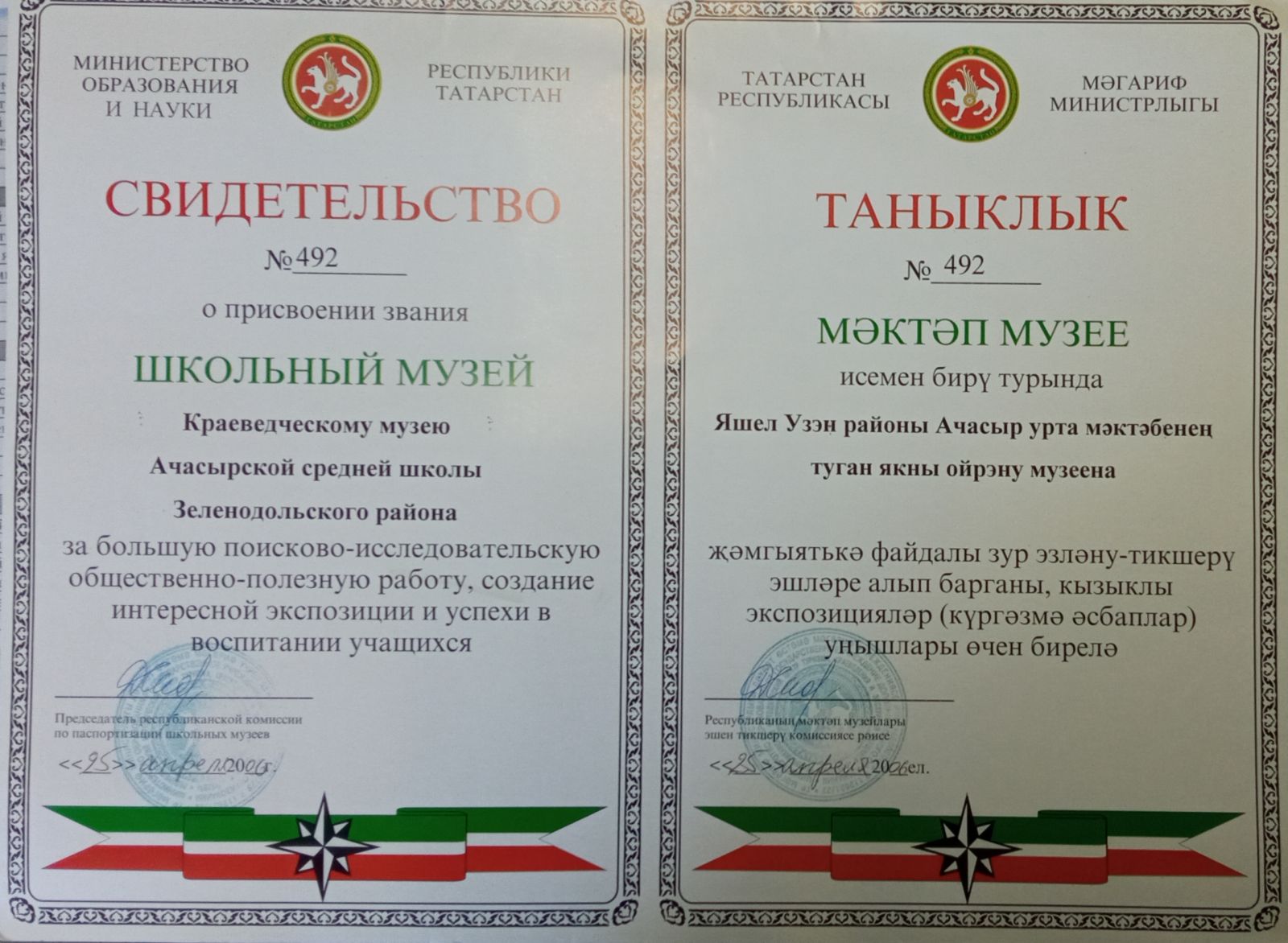 | Короткое название: | МБОУ "Ачасырская ООШ ЗМР РТ" |