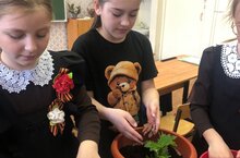 Вместе с советником директора пересадили комнатные растения????????????. Все дети принимали активное участие: помогали пересаживать растения, поливали их, вытирали листочки, убирали рабочее место, инструменты. Во время пересадки растений дети учились выполнять работу в определенной последовательности, формировалось представление о том, что растения живые и могут расти, если для них созданы специальные условия: вода, свет, тепло. -