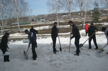 В рамках объявленного в нашем районе двухмесячника средников и субботников наши учащиеся принимают активное участие. Хорошо потрудились учащиеся в среду на отведённом участке работы. И сегодня старшеклассники занимались расчищением территории от снега.