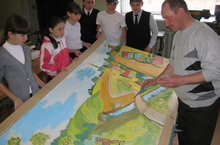 Огромную декорацию к спектаклю, который готовят наши учителя к смотру художественной самодеятельности, нарисовал учитель рисования Сафиуллин Дамир Габдулхаевич. Зелёные леса, голубые небеса, красивая деревня, глубокая река - такой богатый пейзаж разместился на полотне длиною в 4 метра. Мы же восхищаемся такой работой и благодарим нашего коллегу за большой труд.