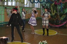 Сюжет новогоднего праздника для старшеклассников был прост, но так интересен! Каждый класс уводил зрителей в какую-нибудь страну, чтобы "подсмотреть", как приходит Новый год в разные концы земного шара. Кто только не предстал перед публикой: танцующие индийские слоны с дрессировщицей- танцовщицей; жгучие африканки в горячем танце, ковбои из Техаса или Далласа в зажигающем танце... Всем по душе были этюды из жизни нашей многогранной России.