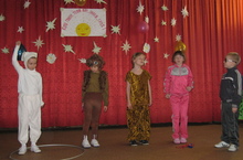 Наши маленькие актеры старательно, с большим желанием готовились к конкурсу. В спектакле "Как тигра готовился к олимпиаде" принимали участие наши младшие школьники Яруллин Айнур, Зарипова Инзиля, Каримова Гузалия, Сирачева Айгуль, Нигматзянова Разиля. Они удивили членов жюри правильной русской речью, непосредственным детским талантом, умением раскрывать образ своего героя. Зрителей покорил ученик 3 класса Айнур, сыгравший дядюшку Сову, мудрого, рассудительного.