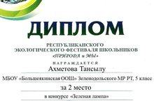 Наши школьники приняли участие в республиканской научно-практической конференции” Экоград“, Республиканском экологическом фестивале ”Природа и мы". Поздравляем призеров! Желаем руководителю Гайнутдиновой Д. Х. дальнейших успехов!