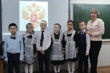 Советник директора Шигабуллина Г.Т. провела с учениками начальных классов интерактивное занятие "Мозайка". Участникам она предложила собрать картинку-пазл и поговорить о символах на гербе России, где расположены и что они обозначают. Ребята очень быстро с этим заданием справились и ответили на все вопросы правильно.