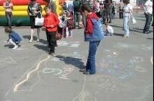 9 мая, на площади около ДК Родина, Центр детского творчества ежегодно проводит конкурс детских рисунков на асфальте.